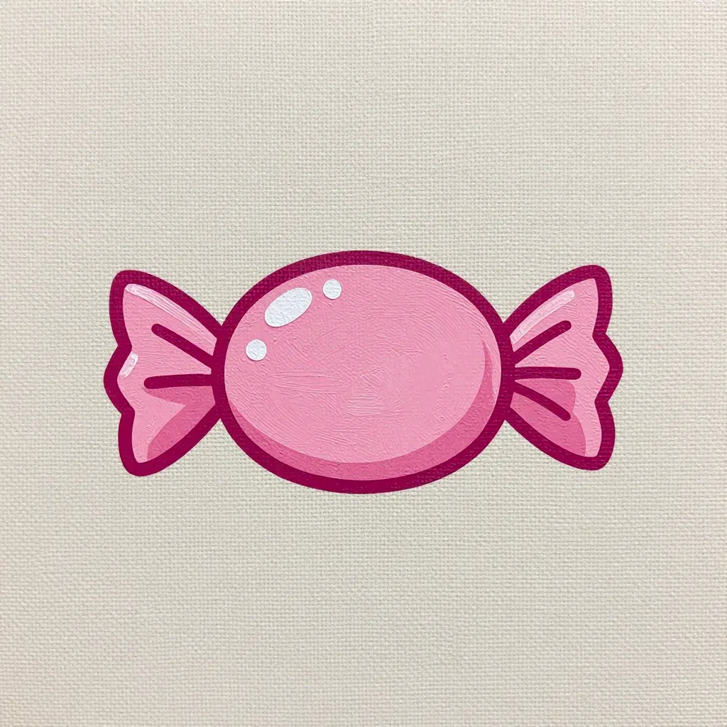 A vibrant pink candy wrapper with a smooth, glossy texture and white speckles, softly lit from above, creating gentle highlights. The neutral, textured canvas background provides a clean and simple backdrop, ideal for branding or packaging design.