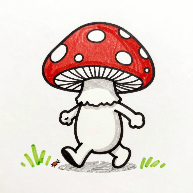 A large red mushroom with white spots and a smooth white stem stands prominently in a softly lit forest setting, with diffused light highlighting its cap and stem. The blurred green background with a shallow depth of field keeps the mushroom sharply in focus, creating a serene and natural atmosphere.