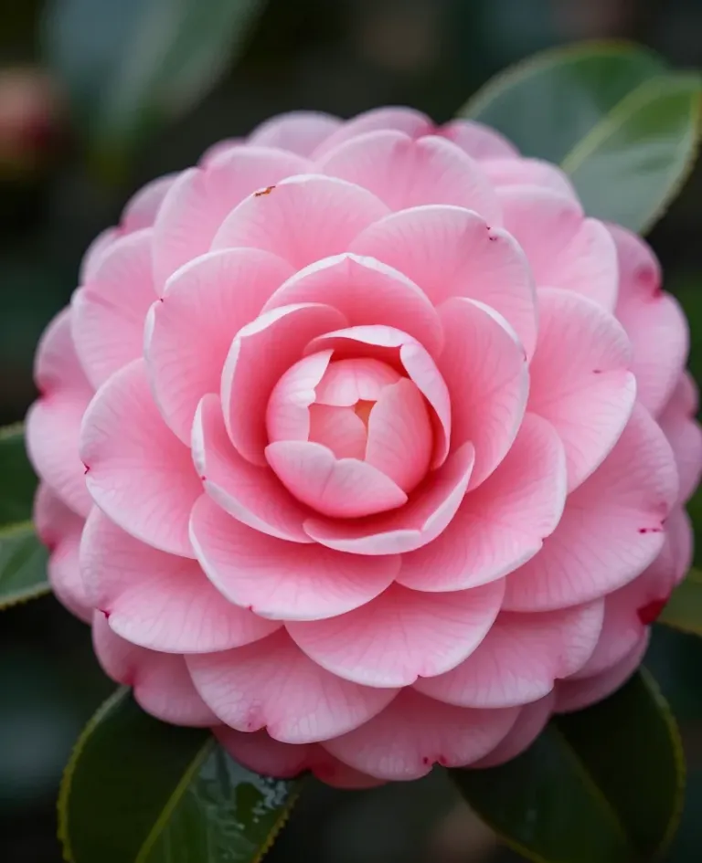 Pink Camellia in Full Bloom with Soft Velvety Petals