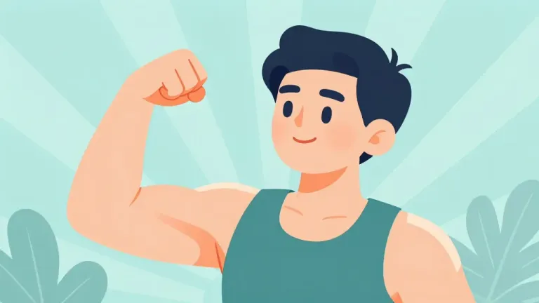 A young man with dark hair and a teal tank top flexes his right bicep with a gentle smile, his smooth skin catching soft highlights under even front lighting. The radial backlighting creates a halo effect against an abstract foliage background with shallow depth of field, emphasizing the subject while providing clean, uncluttered space around him.