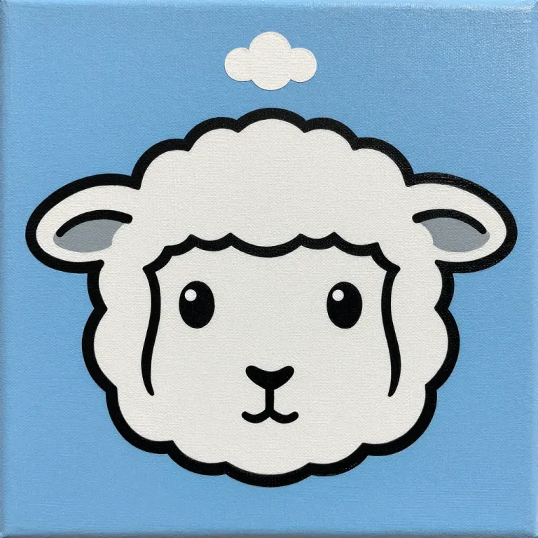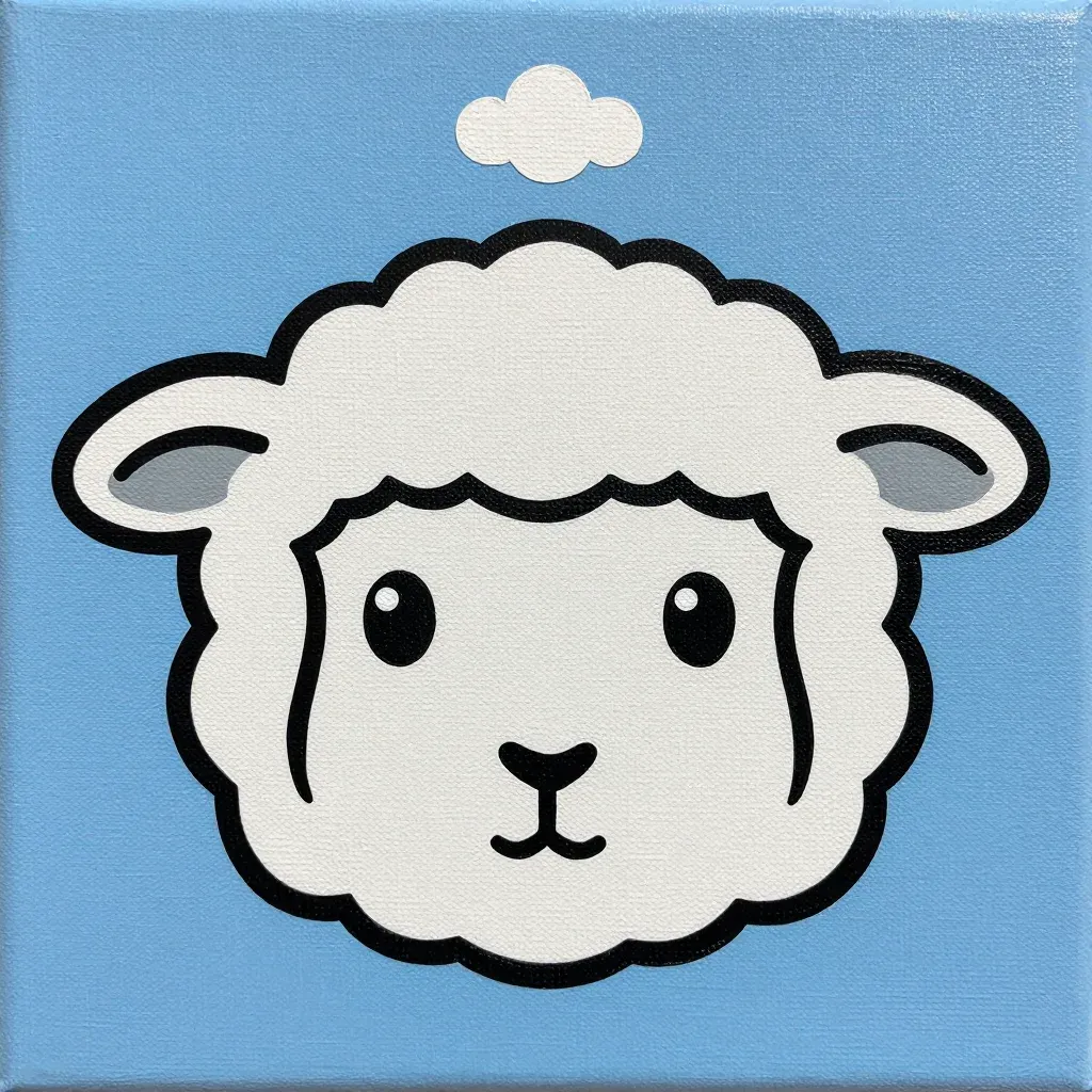 A sheep with a fluffy white face and a cloud-like halo, set against a soft, even light that highlights its features, creating a gentle, dreamy atmosphere. The light blue background provides a calm and unobtrusive backdrop, enhancing the sheep's prominence and creating a balanced and harmonious image.