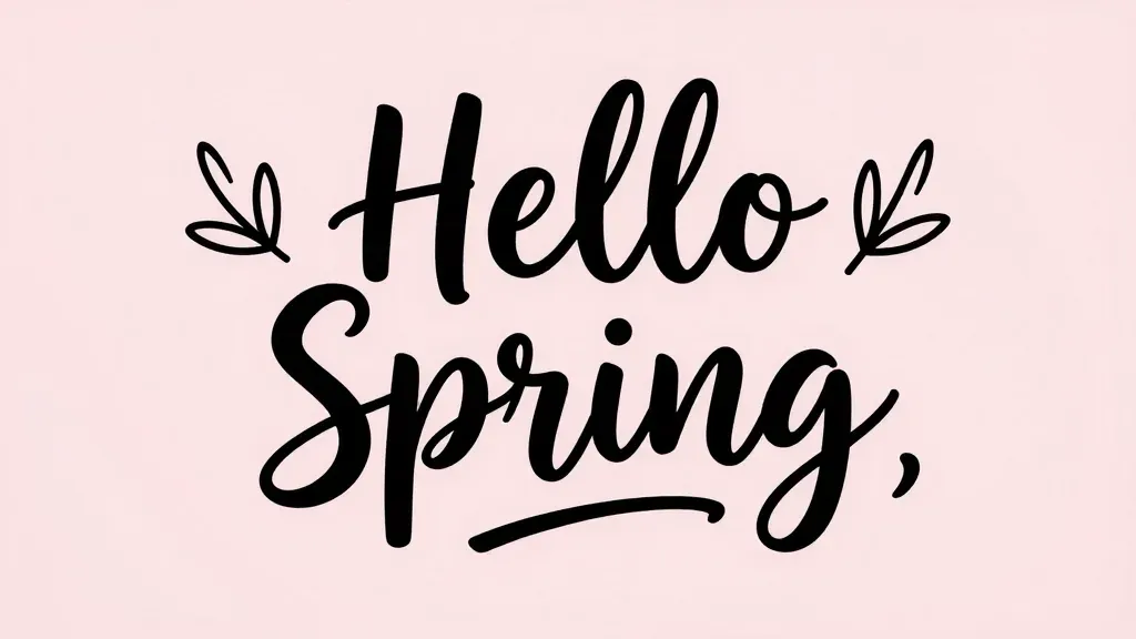Smooth, glossy black lettering with leafy illustrations frames the text, set against a soft pink, out-of-focus background. Diffused, soft lighting highlights the text and leaves, creating a gentle contrast and copy space.