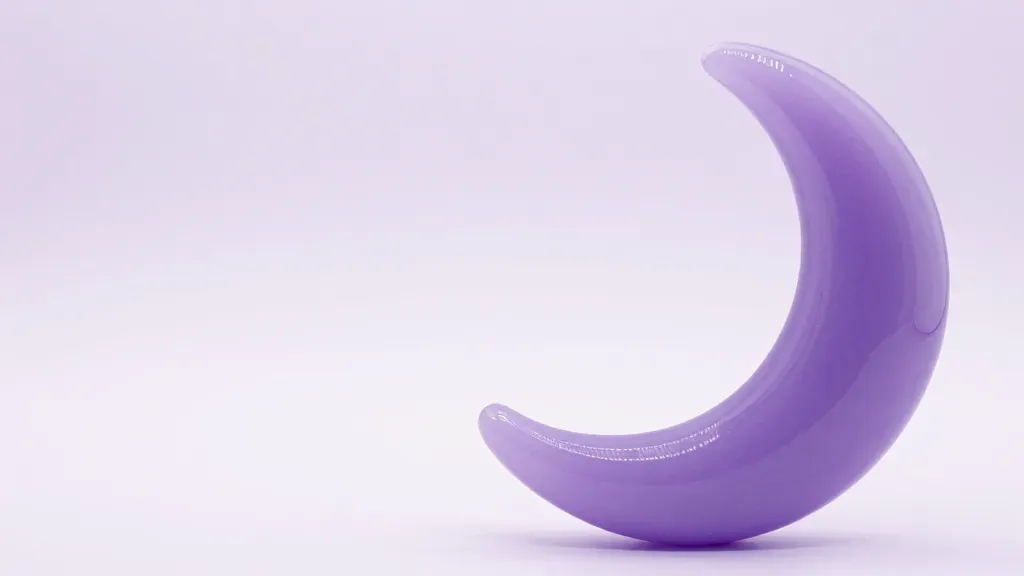 A close-up of smooth, glossy lavender glass crescents, softly lit to highlight their translucence against a pure white background. The shallow depth of field and clean backdrop create a minimalist, elegant setting ideal for product photography.