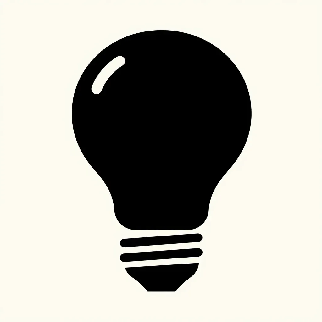 A glossy black lightbulb with smooth, rounded edges and a curved base, softly lit by diffused, gentle light that highlights its surface. The neutral, off-white background provides a clean, uncluttered setting, ideal for minimalistic design elements.