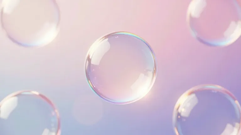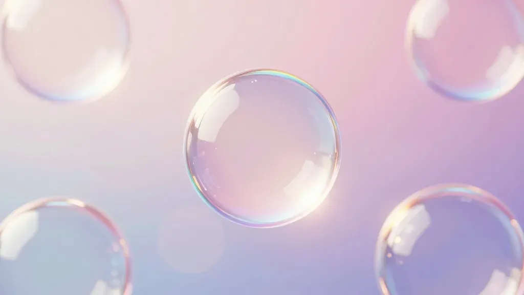 Smooth, glossy, translucent orbs float in a soft, diffused light, creating a dreamy, hazy atmosphere with a shallow depth of field that blurs the background, emphasizing the ethereal quality of the scene.