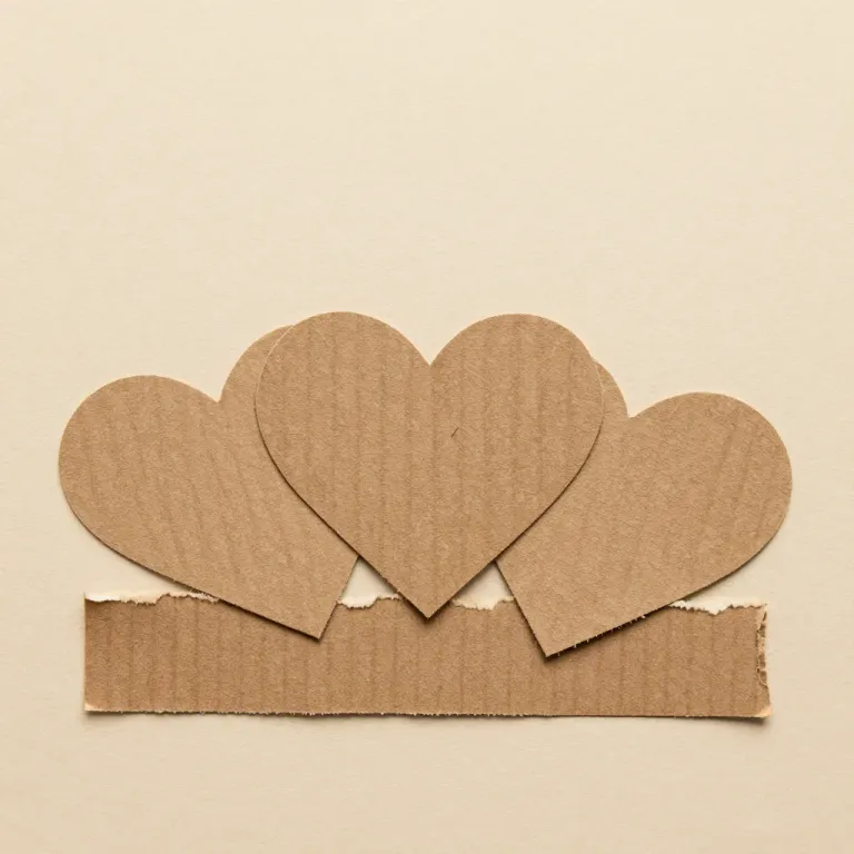 Rough, fibrous hearts cut from brown kraft paper are arranged in a loose cluster, softly lit to highlight their texture against a neutral, off-white background. The composition is simple yet evocative, ideal for a minimalist or rustic design.