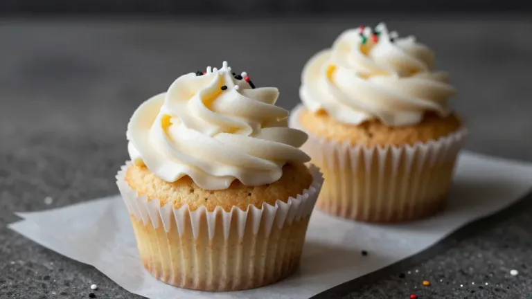 Close-up of mini cupcakes with smooth white frosting and colorful sprinkles, illuminated by soft, diffused light that creates gentle shadows and highlights, set against a neutral dark gray background that enhances the cupcakes' visual appeal.