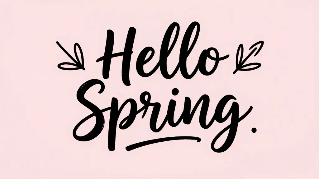 A cursive 'Hello Spring' lettering in black against a soft pink background, illuminated by diffused, even light that enhances the inviting texture of the script. The minimalistic, blurred background ensures the lettering remains the focal point, ideal for spring-themed designs.
