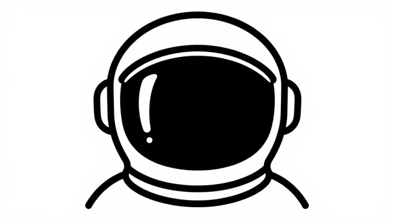 Front-facing astronaut helmet rendered in clean black line art with a glossy visor and matte shell, emphasizing a minimalist, futuristic design. The image features flat, even lighting with a single highlight on the left visor and a centered, symmetrical composition on a plain off-white background, providing ample copy space.