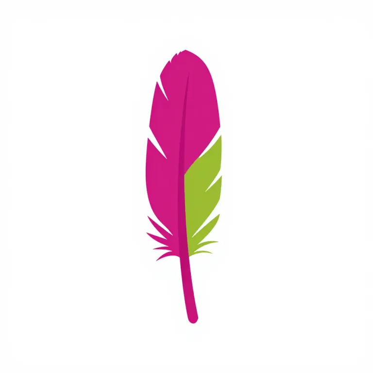 A glossy pink feather quill stands upright against a neutral gray background, illuminated by soft, diffused light from above, creating gentle highlights and subtle shadows. The centered composition and blurred background emphasize the quill as the main subject, offering ample copy space for design applications.