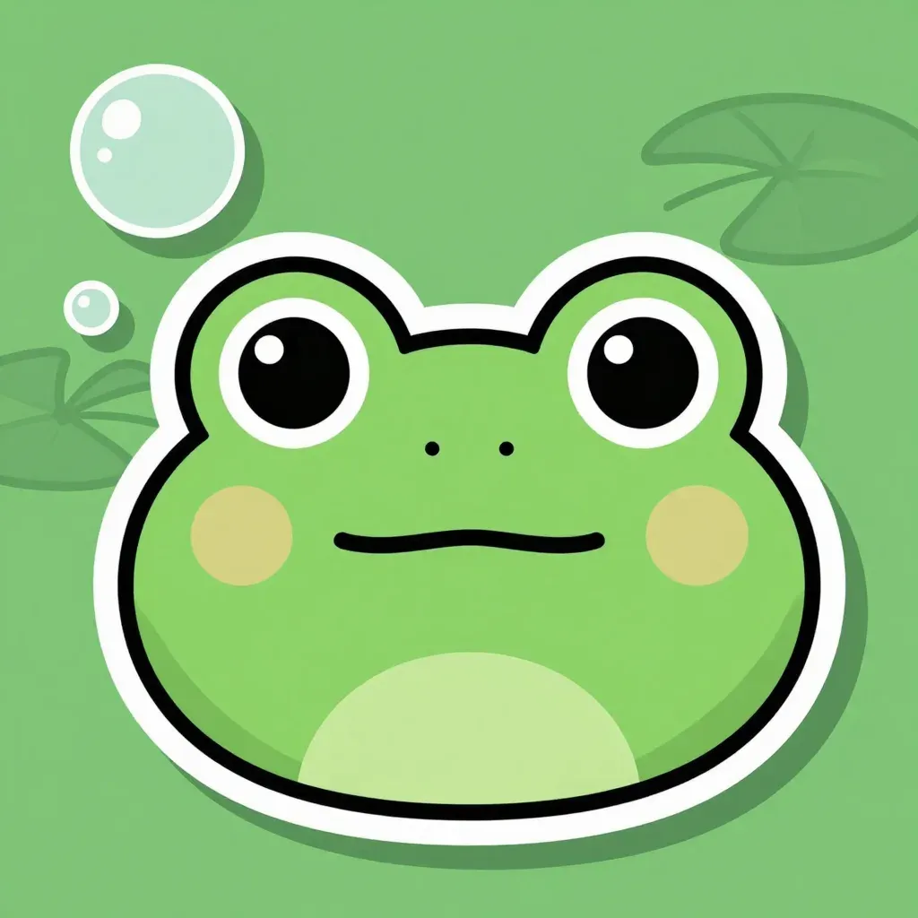 A close-up of a green frog with large, glossy eyes and round yellow spots, set against a gradient green background with subtle water lily leaves and bubbles, highlighting the frog's smooth, slightly glossy skin under soft, diffused light.