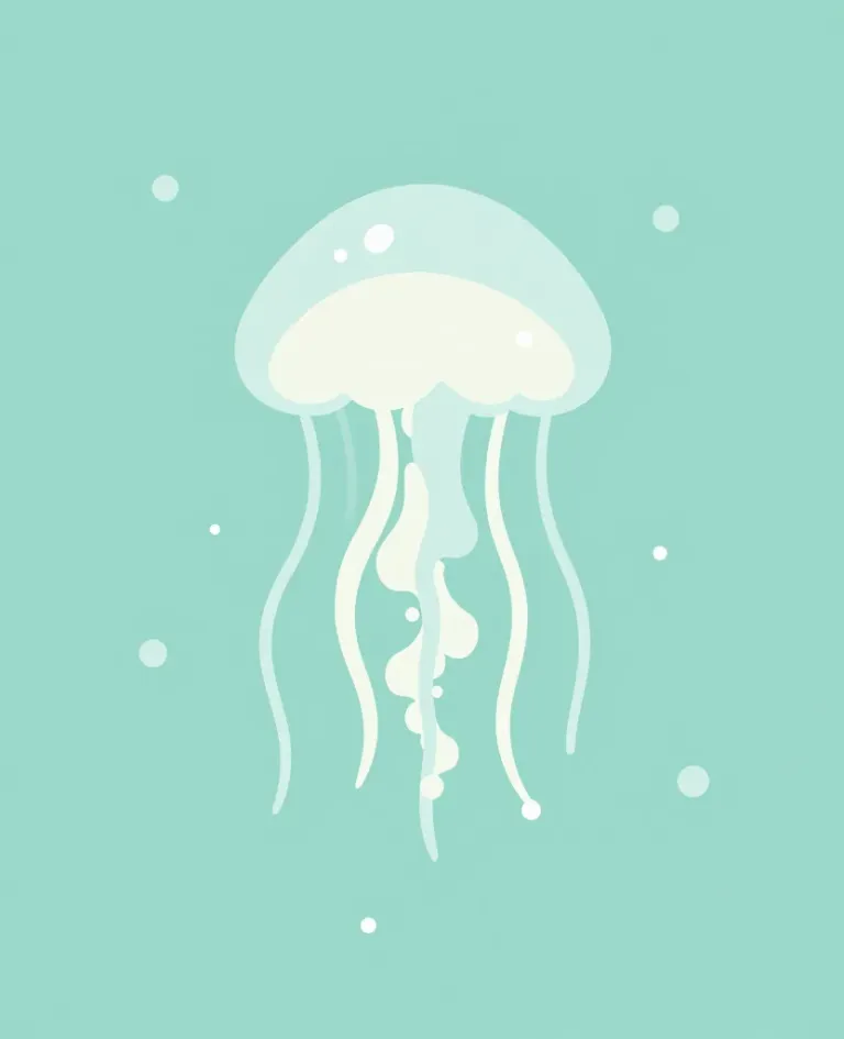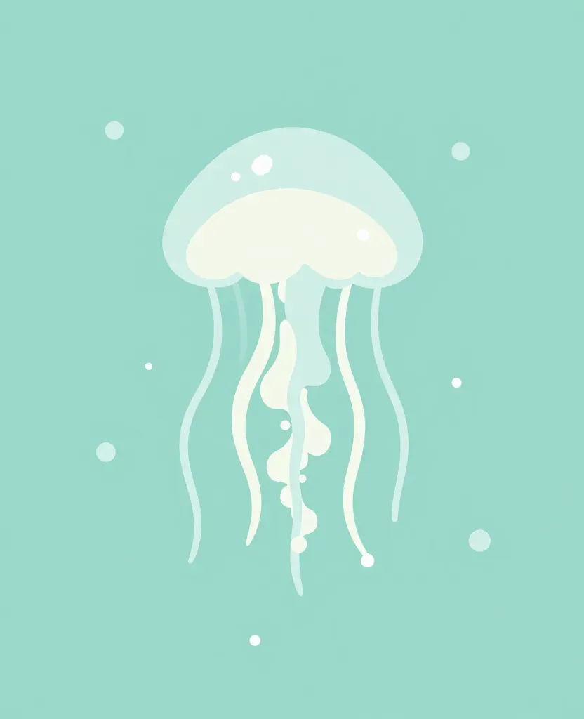 A translucent jellyfish gracefully drifts against a teal background, illuminated by diffused light that highlights its delicate, flowing tentacles. The composition is centered, creating a sense of depth and movement, with a slightly blurred background to emphasize the jellyfish.