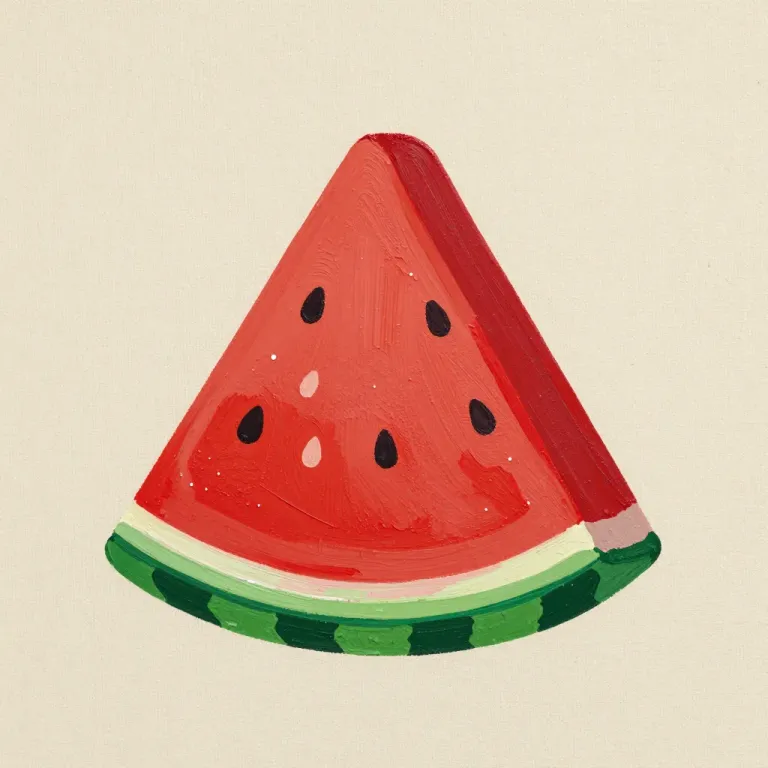 A close-up of a glossy watermelon wedge with vibrant red flesh and rough green rind, illuminated by soft, overhead light that creates subtle highlights and shadows, emphasizing the texture and color contrast against a creamy beige background.