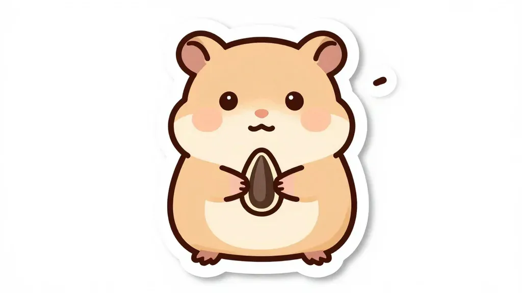 A cartoon hamster with puffed-out cheeks and a content expression, bathed in soft, diffused light that highlights its fur and creates a gentle glow. The neutral white background, blurred and out of focus, emphasizes the hamster and provides ample copy space.