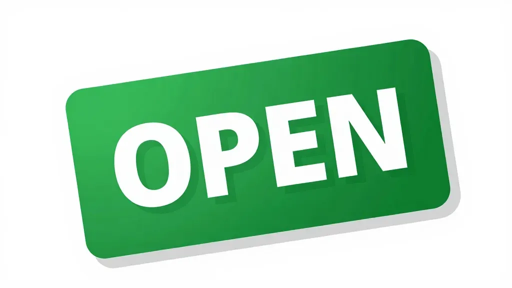 A smooth, glossy green 'OPEN' sign with white text, softly lit from above, creating highlights and shadows, set against a neutral gray background that emphasizes the sign's vibrant color and polished texture.