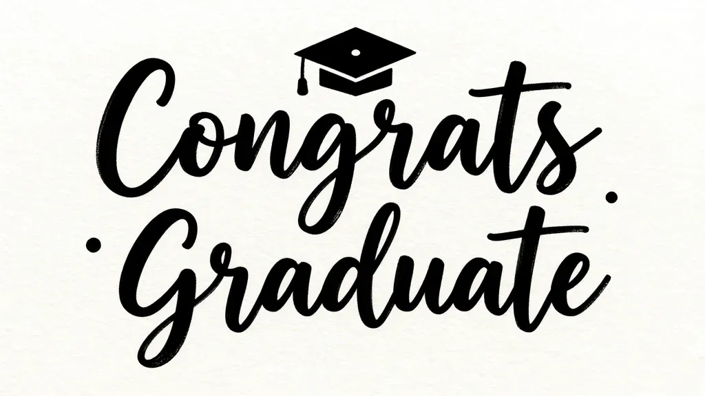 A celebratory 'Congrats Graduate' message with a graduation cap, written in black ink on a textured off-white paper with soft, even lighting. The clean, centered composition and plain background make it ideal for greeting cards or digital congratulations.