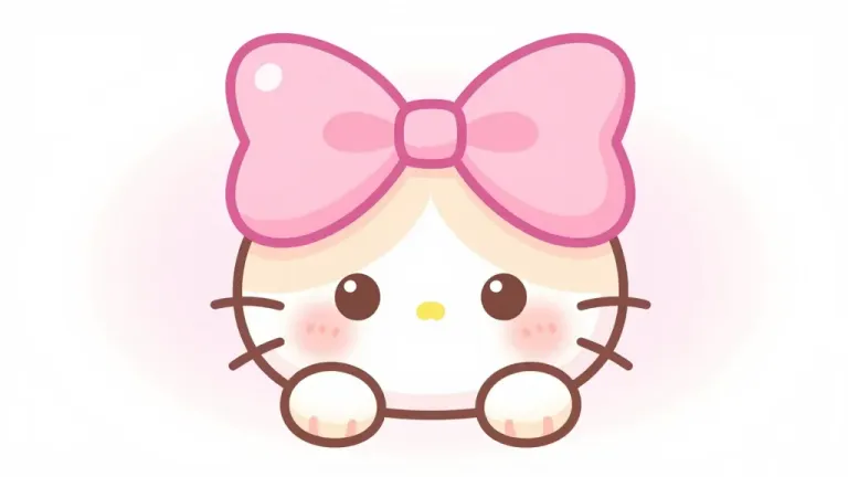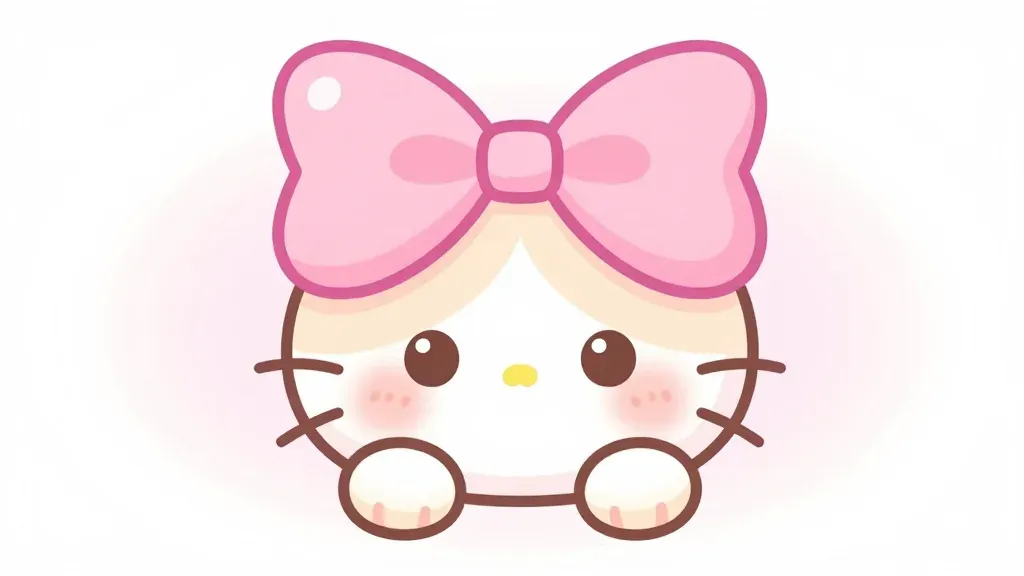 A close-up of a kitten adorned with a large pink bow, softly lit to highlight its plush fur and glossy bow. The blurred, light pink gradient background enhances the subject's prominence, creating a serene and charming atmosphere.