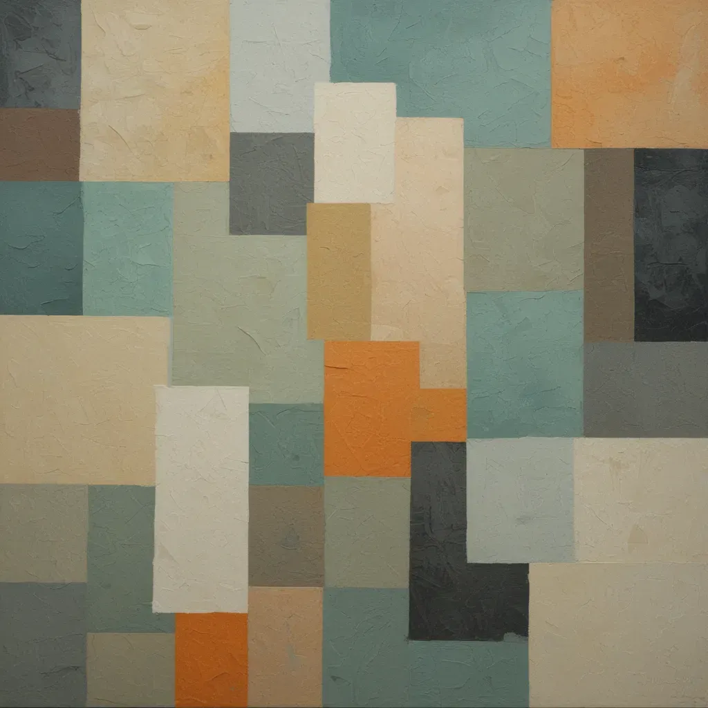 Rough, tactile abstract color fields with visible brushstrokes and impasto techniques, illuminated by soft, diffused lighting that enhances the three-dimensional effect. The balanced composition and subtle background make it versatile for various design applications.