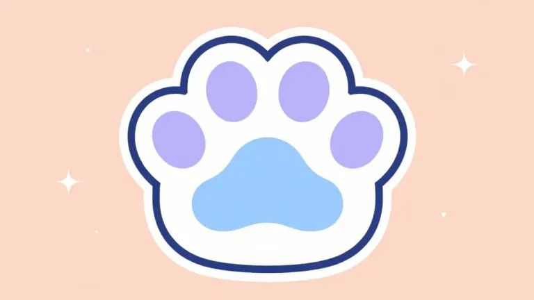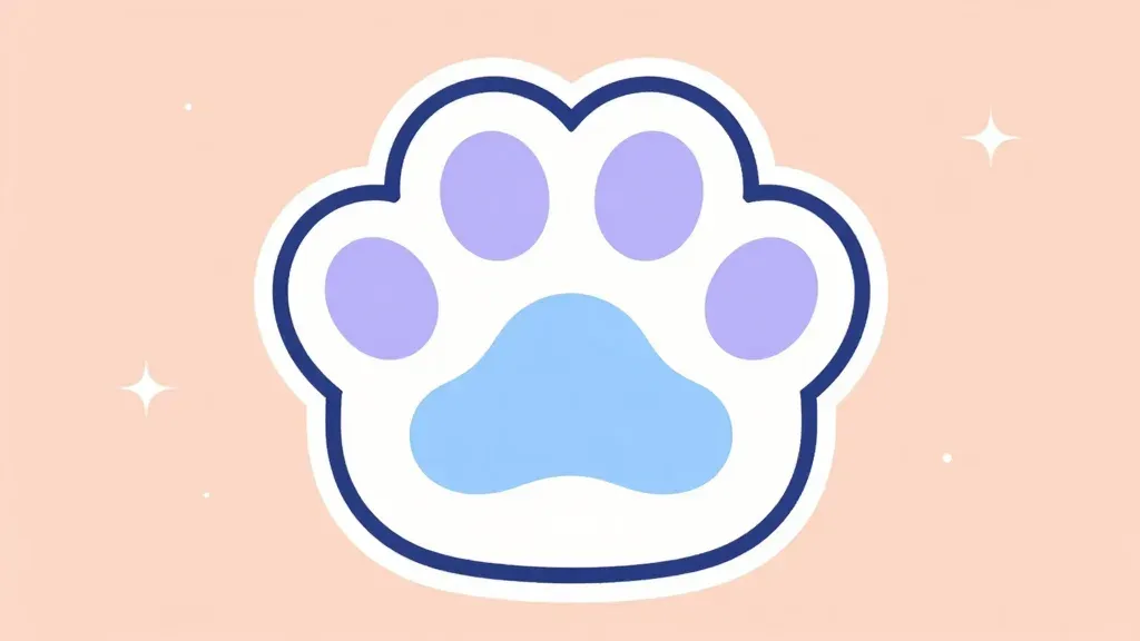 A cloud-shaped paw print with four rounded pads and a central pad, rendered in soft, plush lavender and blue hues, bathed in a gentle diffused glow. The shallow depth of field and minimalistic background provide ample copy space for design integration.