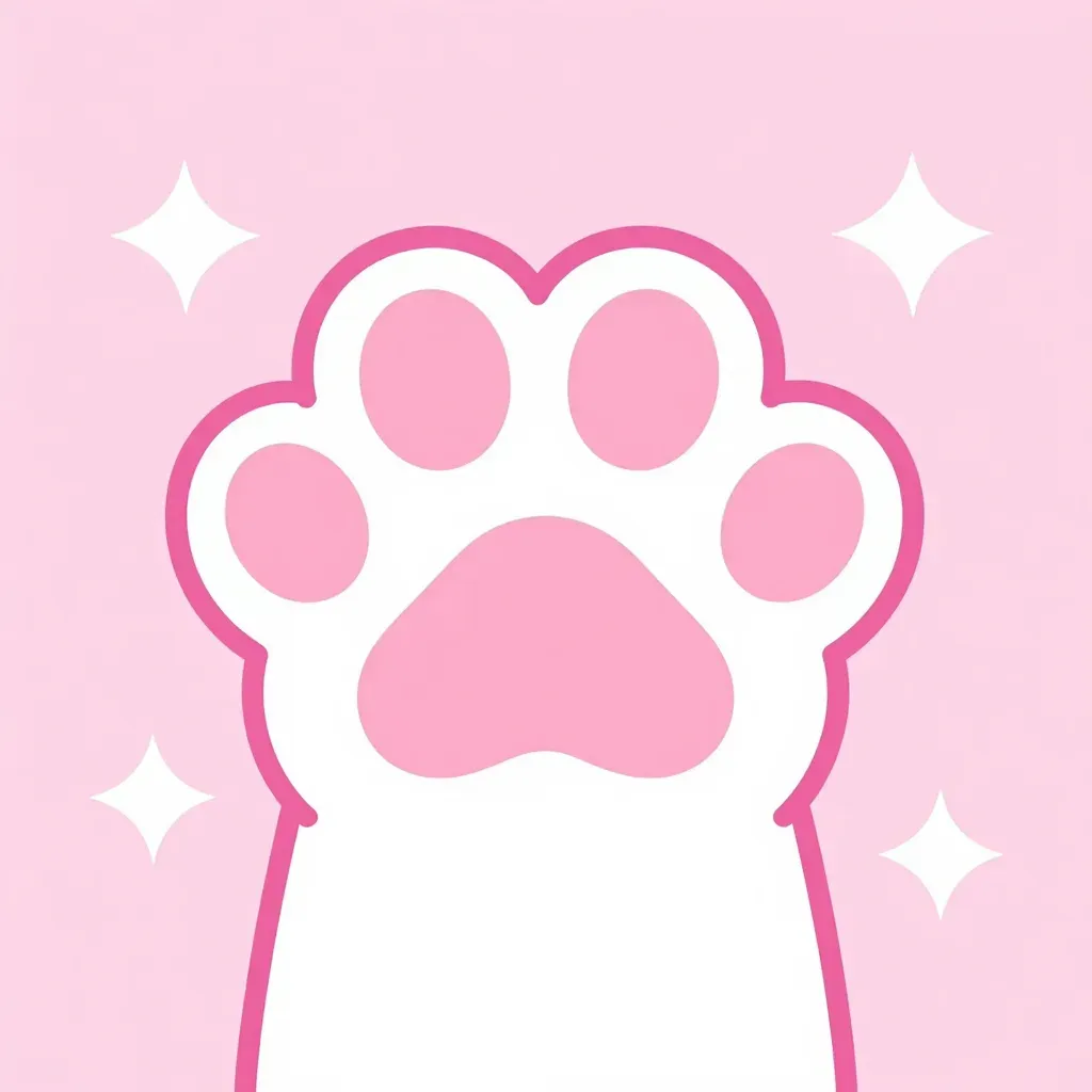 A soft, glossy paw pad with four pink pads and a central pink nose, set against a pink background with white sparkles, creating a gentle and ethereal atmosphere. The composition is centered, drawing attention to the detailed texture and lighting highlights.