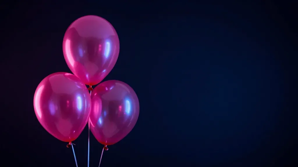 A cluster of glossy pink balloons, translucent and almost liquid-like, softly illuminated by diffused, cool light, creating subtle highlights and shadows against a dark, almost black background. The centered composition and slight off-center arrangement create a sense of depth and visual interest.