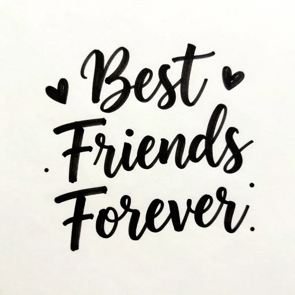 A handwritten phrase 'Best Friends Forever' with hearts, set against a smooth, glossy white background under soft, diffused lighting. The centered composition and clean background provide ample copy space for various design applications.