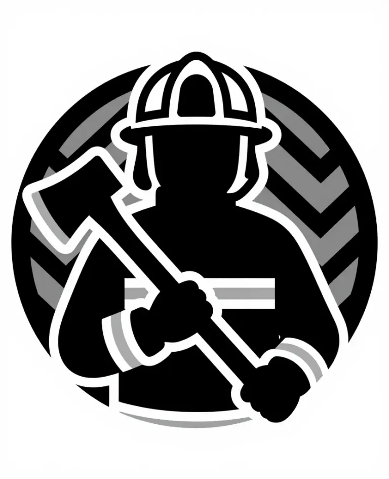 A high-contrast silhouette of a firefighter holding a fire axe, set against a textured, striped background that enhances the emblem-like quality of the image. The sharp lighting and symmetrical composition make it ideal for use in logos or badges.