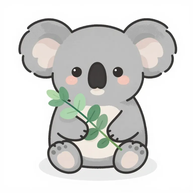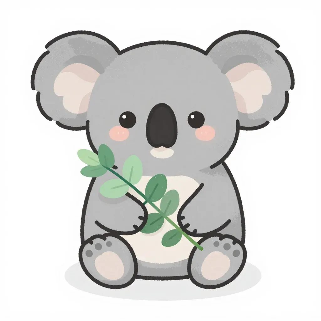 A soft, plush koala holds vibrant green eucalyptus leaves, illuminated by gentle, diffused light. The minimal, plain white background ensures the focus remains on the subject, creating a clean and serene composition.