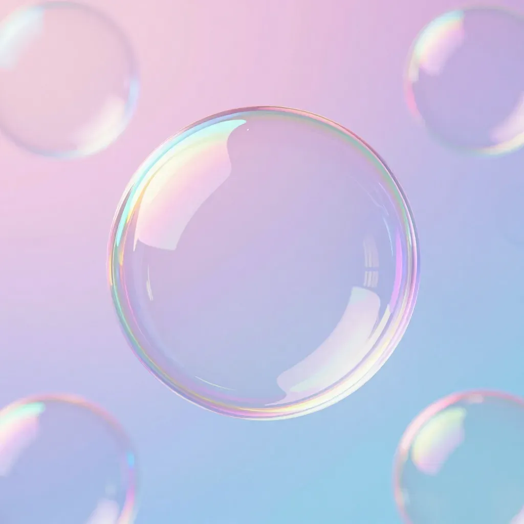 A cluster of iridescent soap bubbles gently floating against a soft, pastel gradient background, creating a dreamy and ethereal atmosphere. The shallow depth of field draws attention to the central bubble while the others softly blur into the background, enhancing the ethereal quality of the scene.