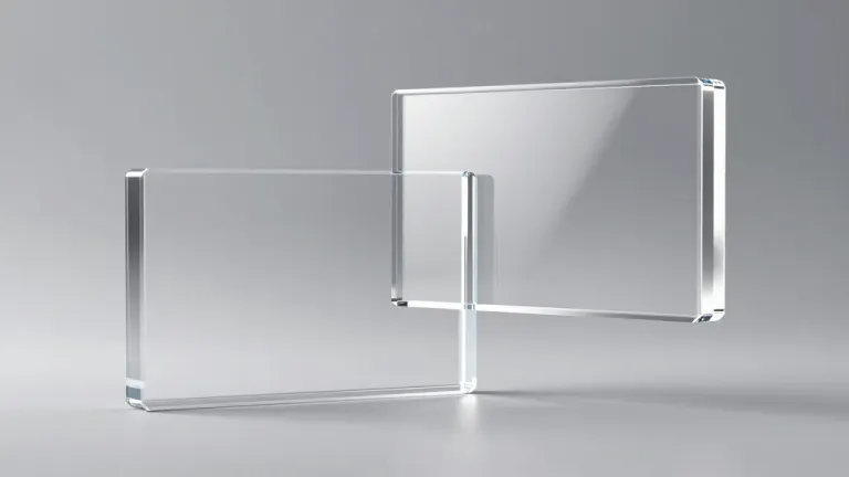 Two translucent acrylic blocks reflect light and create soft shadows, emphasizing their glossy, smooth texture and slight viscosity. The neutral, light gray background enhances the blocks' clarity and depth, offering ample copy space for design elements.
