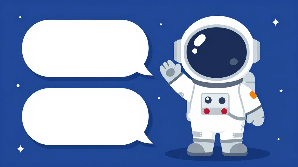 A cartoon-style astronaut in a white spacesuit waves cheerfully, accompanied by two blank speech bubbles against a starry navy blue background. Soft diffused lighting from the upper left highlights the suit’s shoulders and helmet, while the flat 2D composition and clean background provide ample copy space for text or design elements.