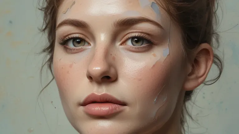 A close-up of a face with a glossy, creamy substance applied, highlighting its texture and soft lighting. The neutral background ensures the focus remains on the subject's detailed application and finish.
