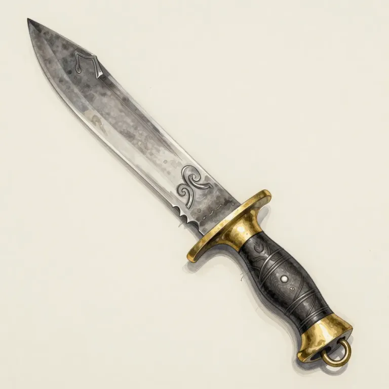 A Hooked-Pirate-Cutlass with a reflective metallic blade and dark textured handle, adorned with gold accents, set against a soft, diffused light that highlights its engravings and creates a warm glow. The neutral, light beige background slightly blurs to emphasize the cutlass, providing ample copy space.