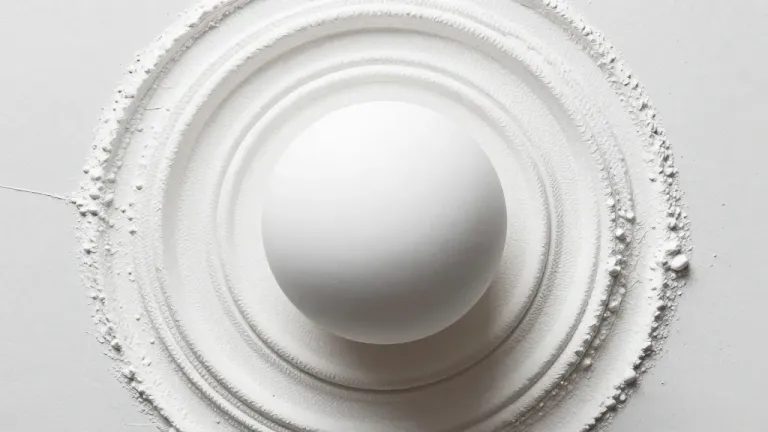 A close-up of a smooth, glossy ceramic sphere nestled within concentric, rough, grainy rings, illuminated by soft, diffused light from above, creating subtle shadows and emphasizing the texture and depth of the subject.