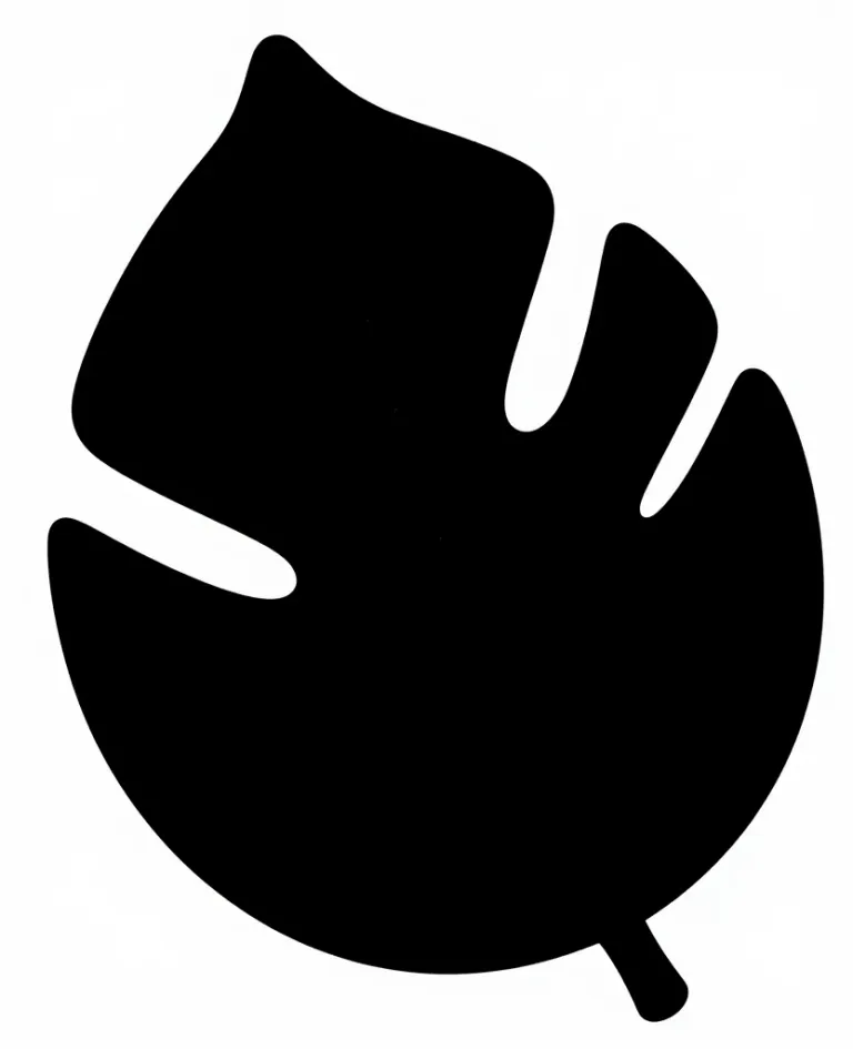 A glossy black monstera leaf with natural veining stands out against a soft, diffused light from above, creating highlights and shadows. The plain, light gray background emphasizes the leaf's intricate details and balanced composition.