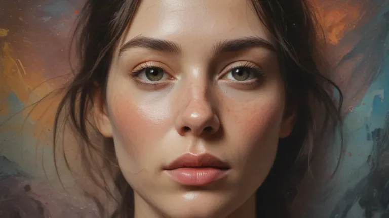 A close-up portrait of a person with smooth, luminous skin illuminated by soft, diffused light, creating a warm, inviting atmosphere. The shallow depth of field and textured background emphasize the subject's features and add a painterly quality to the image.