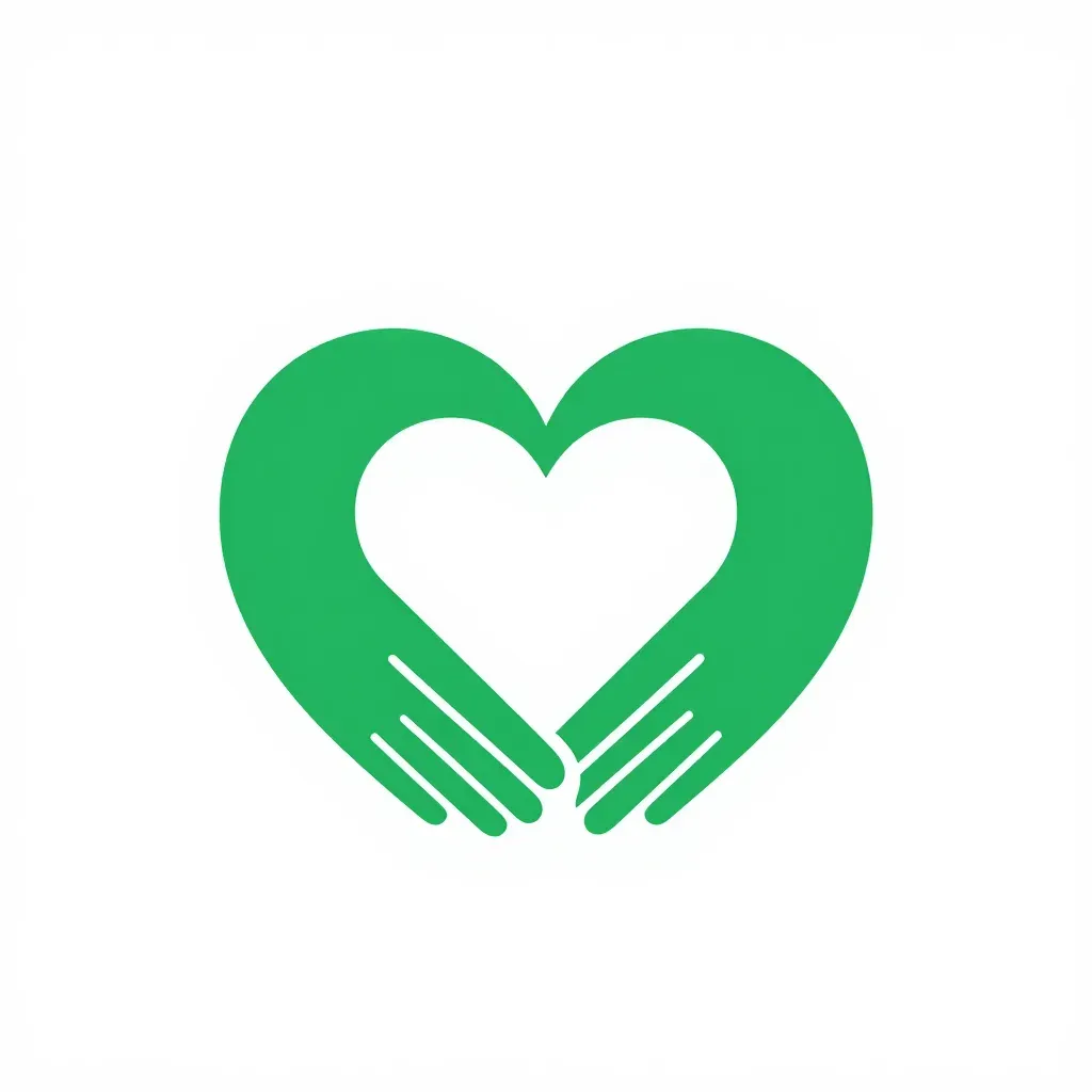 Matte green hands gently frame a glowing heart, creating a soft, diffused light effect that highlights the central focus. The plain white background ensures the hands and heart stand out, providing ample copy space for design integration.