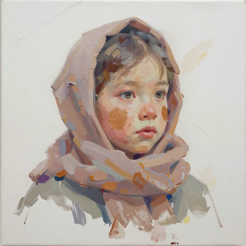 A child's face and upper body are partially covered by a textured scarf, illuminated by soft, diffused light from the left, creating gentle shadows and highlights. The blurred background ensures the child and scarf remain the focal point.