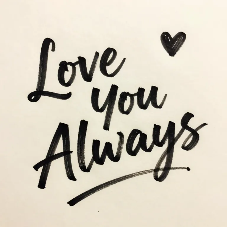 A soft, even light highlights the handwritten phrase 'Love You Always' on off-white paper, creating a gentle glow around the text. The composition is centered with a heart symbol above 'Always', emphasizing the sentiment. The background is plain and slightly blurred to keep the focus on the text.