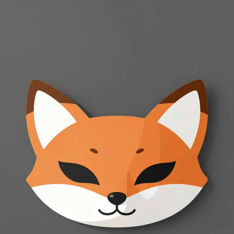 A glossy, smooth fox mask with vibrant orange fur and soft white inner ears and muzzle peeks out against a dark gray, blurred background. The soft, diffused lighting highlights the mask's features and creates subtle shadows, emphasizing its texture and depth.