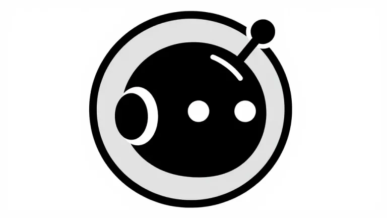 A glossy black sphere encased in a smooth white circular emblem, with reflective eyes glowing softly under ambient light. Clean, off-white background emphasizes the subject and provides ample copy space.