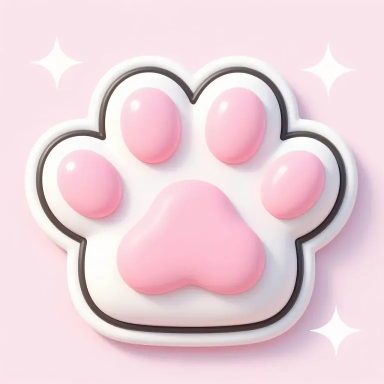 A glossy, velvety paw print with four pink pads and a pink nose, set against a soft, diffused pastel pink background with subtle white sparkles, creating a magical and playful atmosphere. The gentle highlights and shadows enhance the three-dimensional effect, making it ideal for design elements or as a decorative graphic.