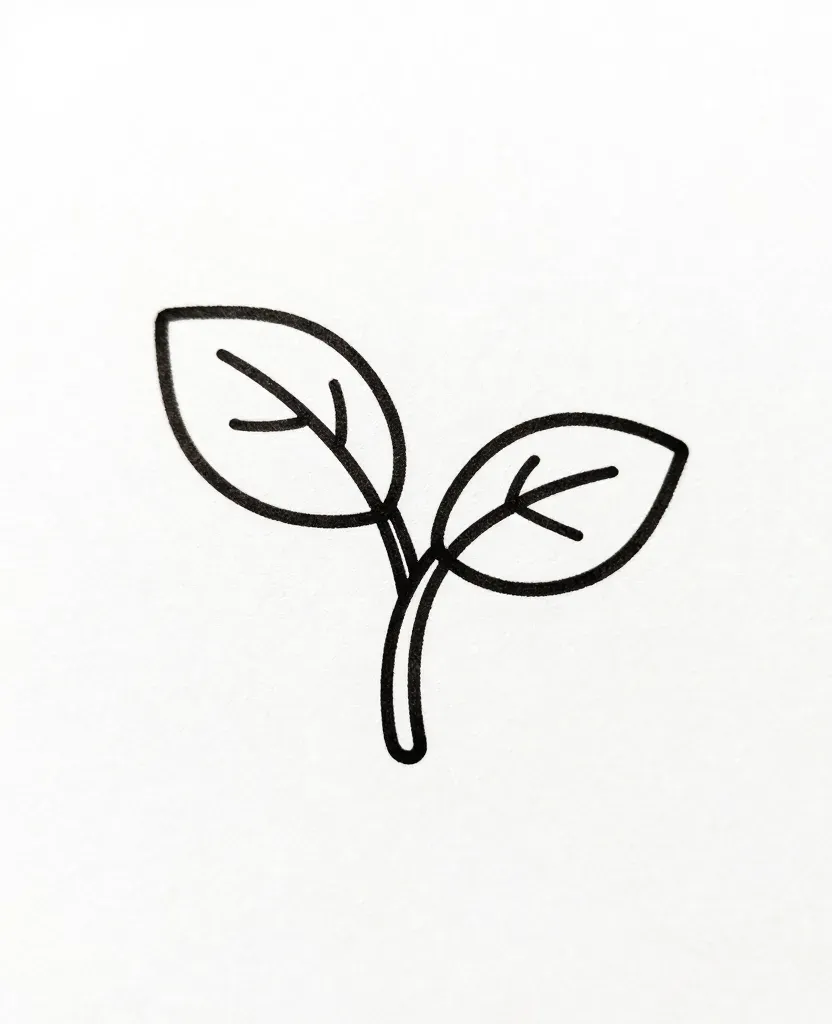 A simple, centered image of a two-leaf sprout with a slender, slightly curved stem, highlighted by soft, diffused light. The plain white background emphasizes the sprout, creating a clean, minimalist feel.