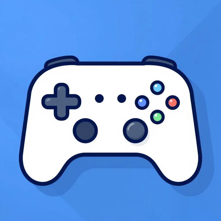 A glossy, smooth game controller with a navy blue and white color scheme, softly lit from above, creating subtle highlights and shadows. The controller is centered with a shallow depth of field, set against a blurred solid blue background.