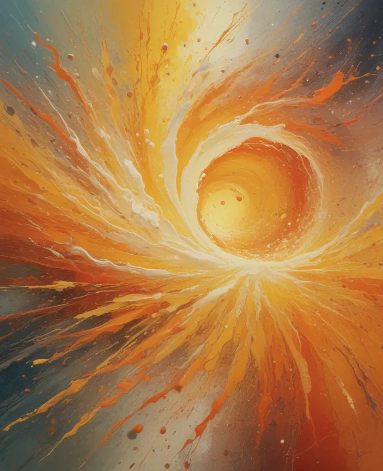 A dynamic spiral of orange, yellow, and red hues radiates outward from a central light source, creating a warm glow and highlighting the edges of the spiral. The blurred background emphasizes the central subject, offering ample copy space for design integration.