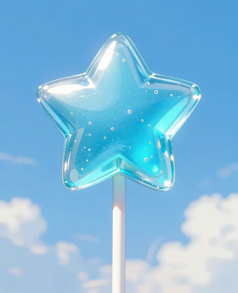 #Star#Lollipop#Translucent#Glossy#Direct Sunlight#Blue Sky#White Clouds#Three-dimensional#Copy Space#Food Photography