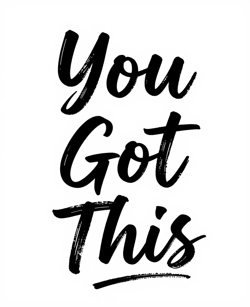 The phrase 'You Got This' is written in a bold, brushstroke-style font, mimicking thick, wet black paint. The soft, even lighting and plain, muted gray background create a balanced and distraction-free composition, ideal for motivational or inspirational content.
