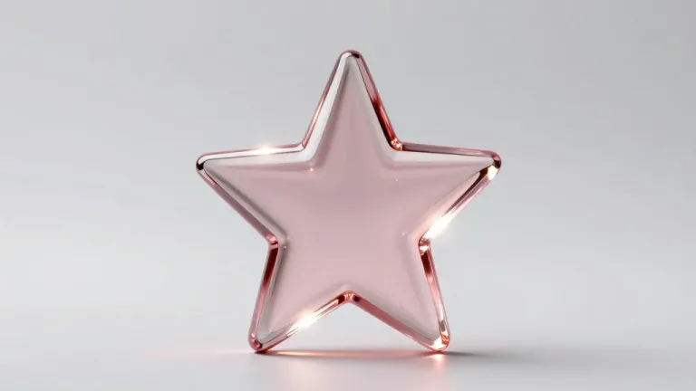 A translucent crystal star gleams softly, its facets catching the light, creating a shimmering effect. The clean, white background and shallow depth of field emphasize the star's delicate beauty and provide ample copy space for design integration.