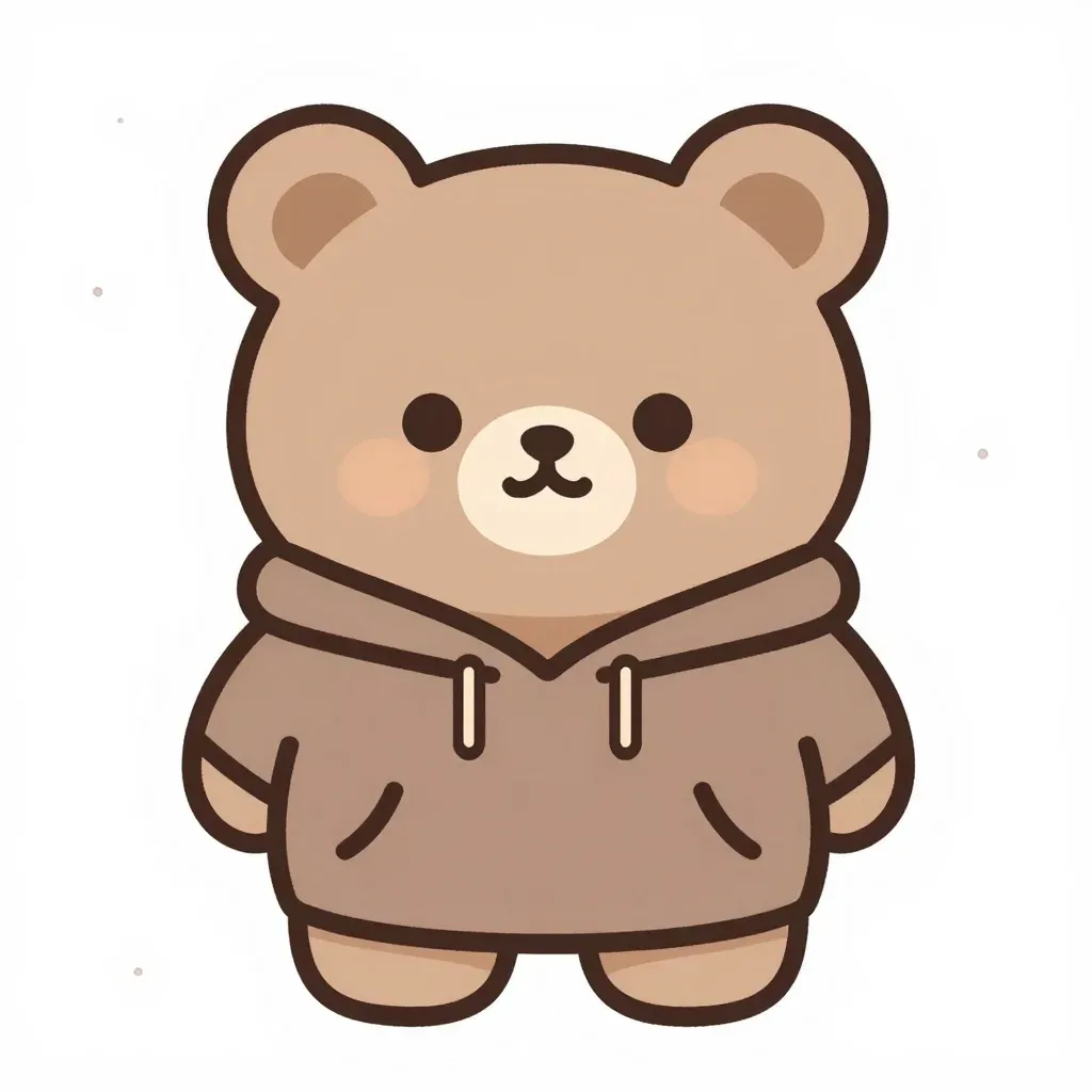 A soft, plush teddy bear wearing a brown hoodie, illuminated by diffused, soft light that highlights its features and the texture of the hoodie. The plain white background ensures the focus remains on the bear, creating a clean and engaging composition.