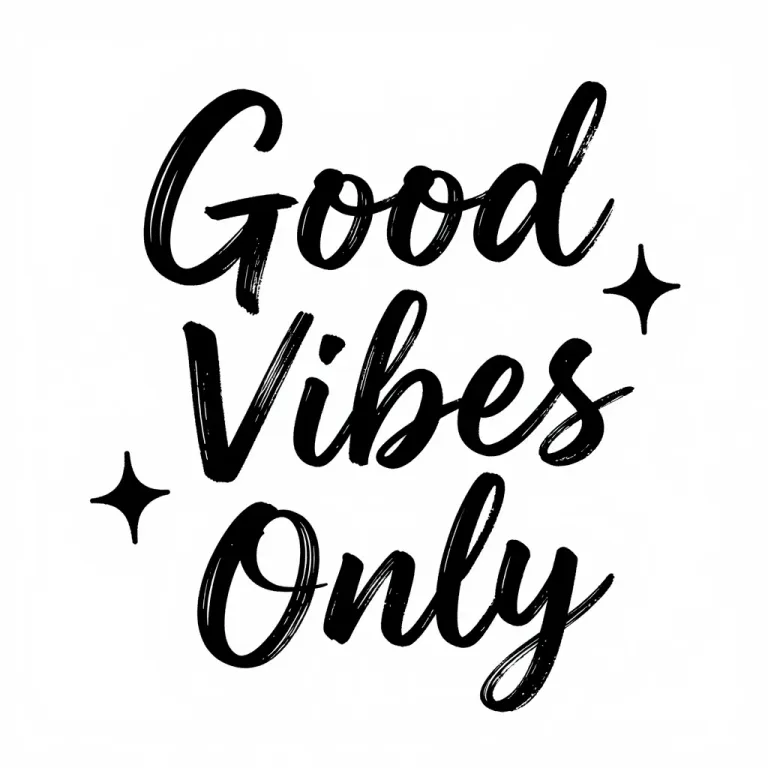 The phrase 'Good Vibes Only' is written in a bold, brushstroke-style font with a handcrafted feel, set against a soft off-white background with white stars. The even and bright lighting highlights the text, making it the main focus of the image with minimal distractions.